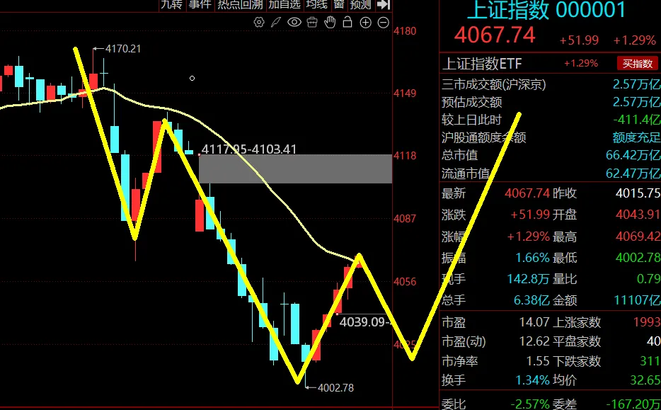 所以明天开盘一个小时比较关键,如果指数能成功站稳4065点,短线操作机会来临,指数有望进一步冲击日线级别均线压力,如果不能站稳,指数可能仍然回踩后才能继续震荡向上反弹.