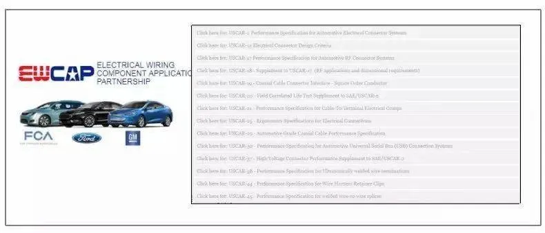 主要由SAE-USCAR系列标准构成,其制定方是由克莱斯勒、福特和通用汽车组成的EWCAP组织。该组织成立于1994年,为适应混合动力汽车的发展,于2008年将电压等级从20V提升至600V。
