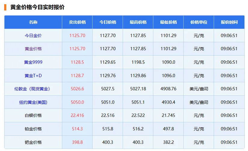 黄金价格今日多少钱一克?本页面提供今日金价在线查询,包括国际金价、国内金价、今日金价、上海黄金价格、银行黄金价格、金店黄金价格、黄金回收价格等实时行情报价。