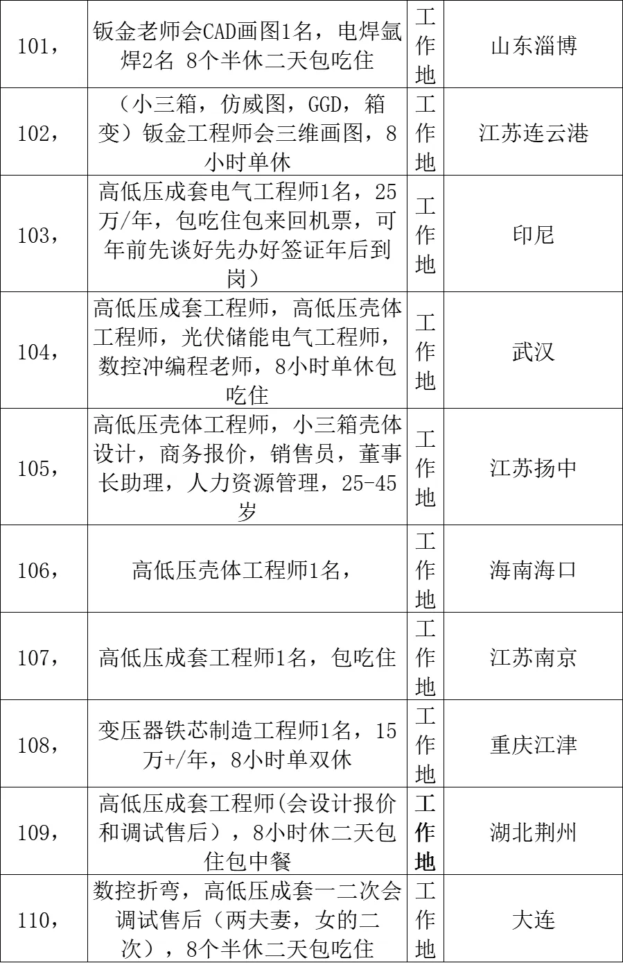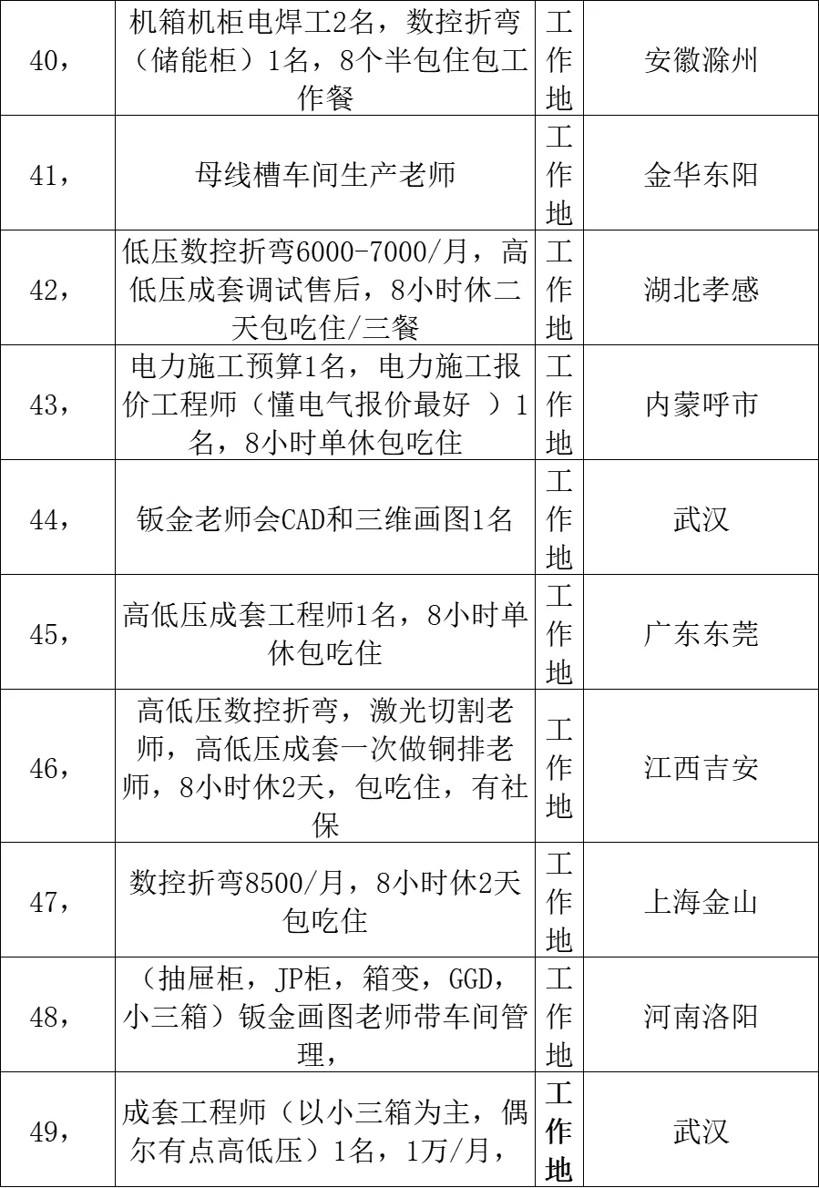 高低压柜体与成套电气行业多岗位招聘信息发布