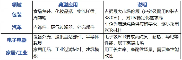 高性能化:UV稳定化、耐热、阻燃等改性技术使PCR进入户外耐久、电子、汽车等高端场景。