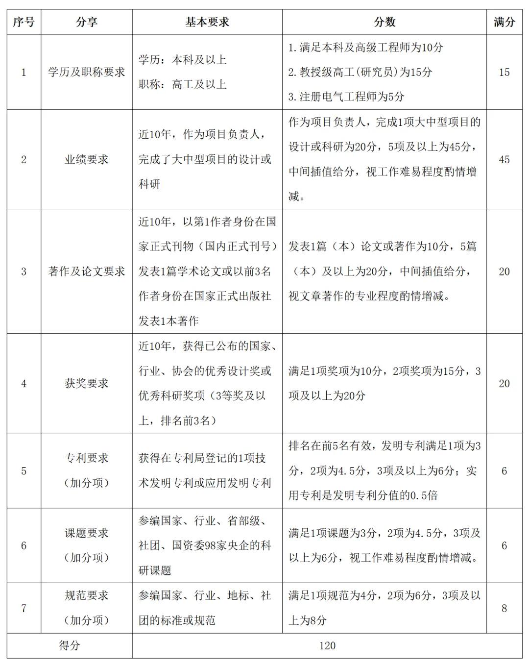 (2)申请人年龄不超过45周岁(即1980年1月1日(含)以后出生)。(3)本人所在单位是中国勘察设计协会电气分会或中国建筑节能协会电气分会的会员单位,或在3月30日前已提交入会申请表。(4)申请评分表得分(见下方表1)不低于72分,并且有两位双高组专家(点击查看双高专家名单)推荐,每位双高专家每年可以推荐2位杰青申请人,申请人最终得分由杰青组负责人统一审核。(5)本次增补优先考虑非民用建筑院、建设单位(含政府、房地产商、投资商等)、施工单位(含总包、分包及集成商等)、科研单位(含高校、科研机构等),以及没有杰青专家组成员的单位申请人。各单位满足要求的分数最高者优先计入,以分数自高向低选取。(6)本次增补组员人数为申报人数的2/3(且不超过50人)。