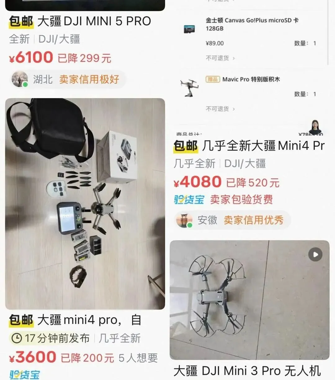 记者在闲鱼、转转等二手平台看到,不少消费者出售大疆御系列、精灵系列等热门产品,不少产品带有“99新”“刚激活”等标签。根据相关行数据显示,2026年1月,二手平台无人机挂售量超60000台,相比去年同期上涨200%。