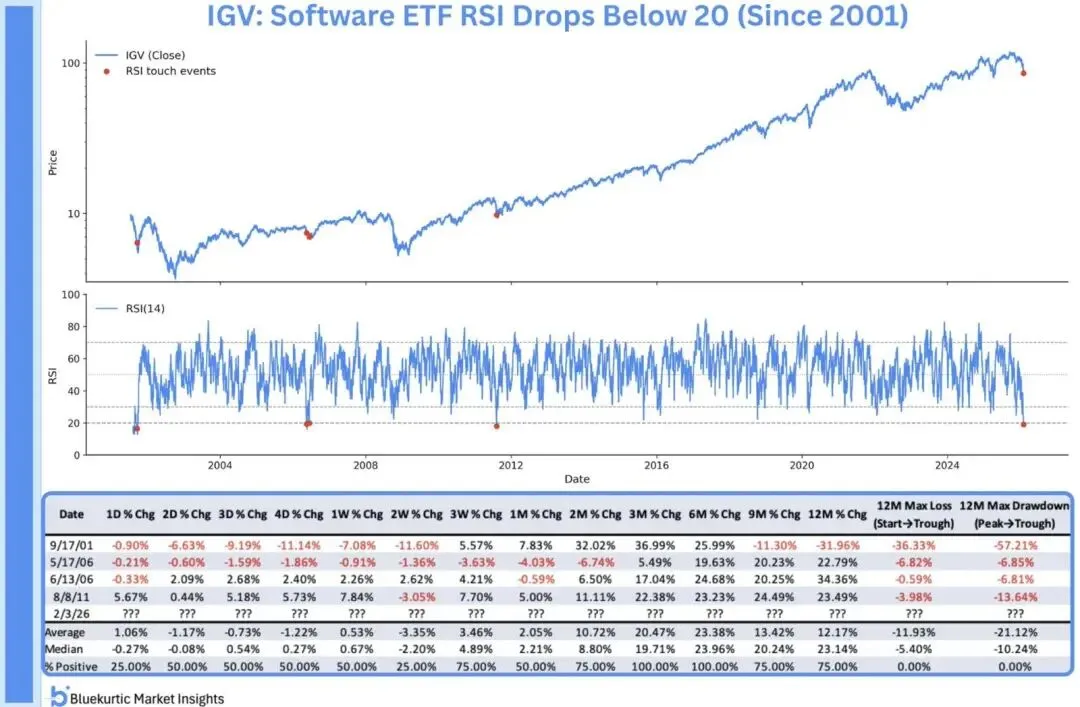 除个股单日重大跌幅外,软件ETF已陷入极端恐慌情绪,抛售+机构止损导致单日剧烈下跌。五年展望:三个分化的情景
