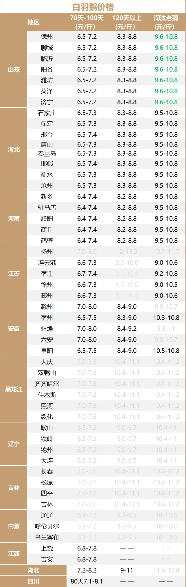 白条鹅价格基本平稳,未来行情预计继续保持平稳。