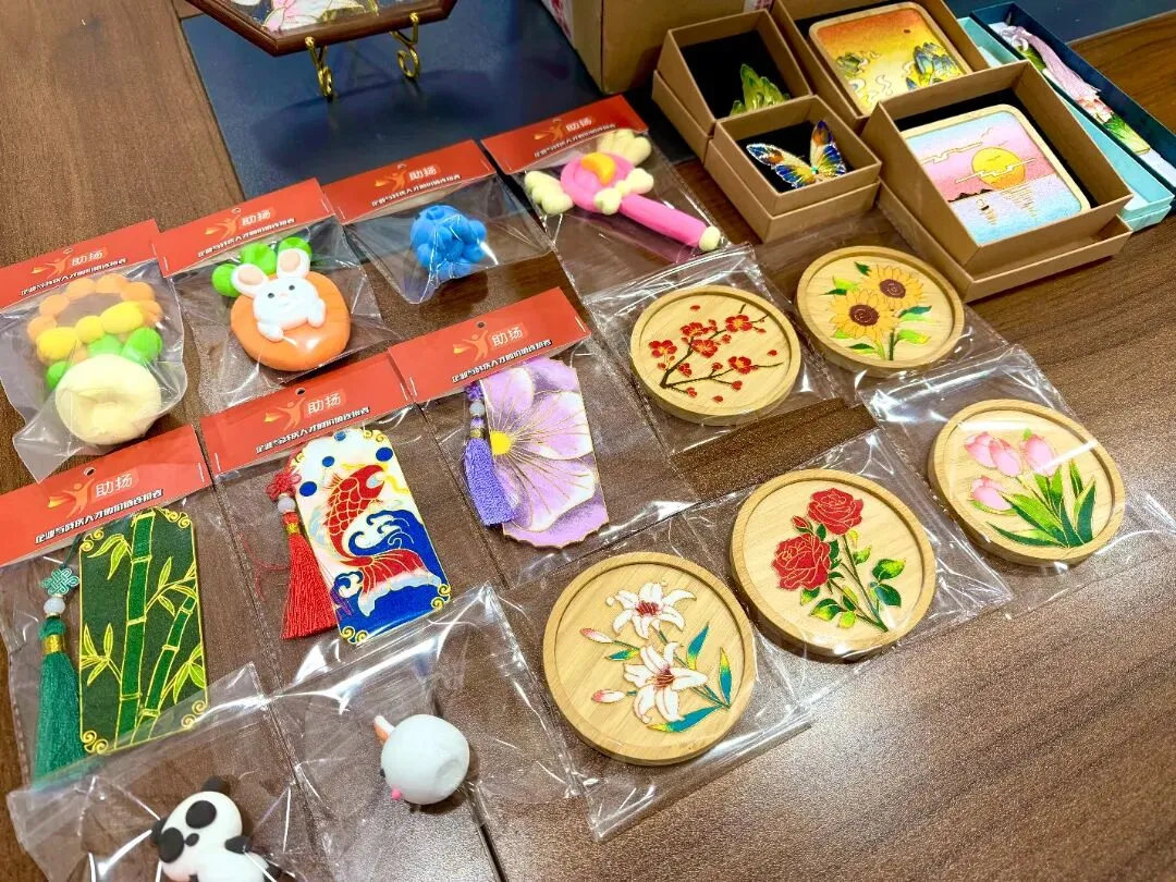 活动现场,“助扬”展位陈列了一系列由残障伙伴独立完成的精美手工作品,包括工艺精湛的掐丝珐琅杯垫与书签、造型生动的轻黏土工艺品等。这些作品不仅体现了残障群体出色的动手能力与艺术创造力,也生动展示了“助扬”项目在职业技能培训、辅助性就业支持等方面取得的阶段性成果。