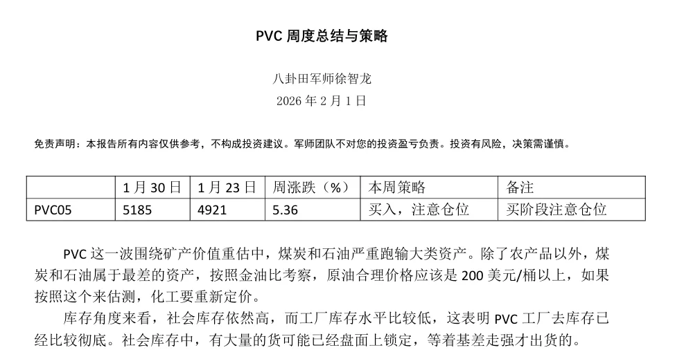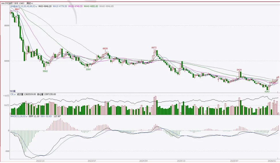 从技术形态来看,PVC周线走势结构清晰,形态稳健。配合当前较高的持仓量,且尚未触及监管关注区间,从交易布局的角度而言,具备较好的关注价值。