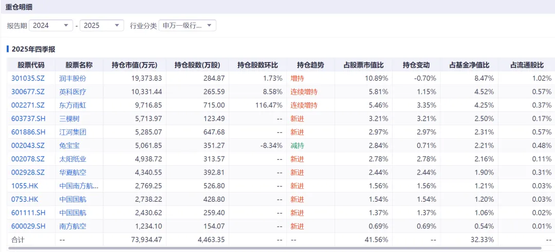 需要提到的是,尽管航空股是这个季度新进成为前十大重仓股,其实多数在半年报就已经出现,只不过仓位比较低。