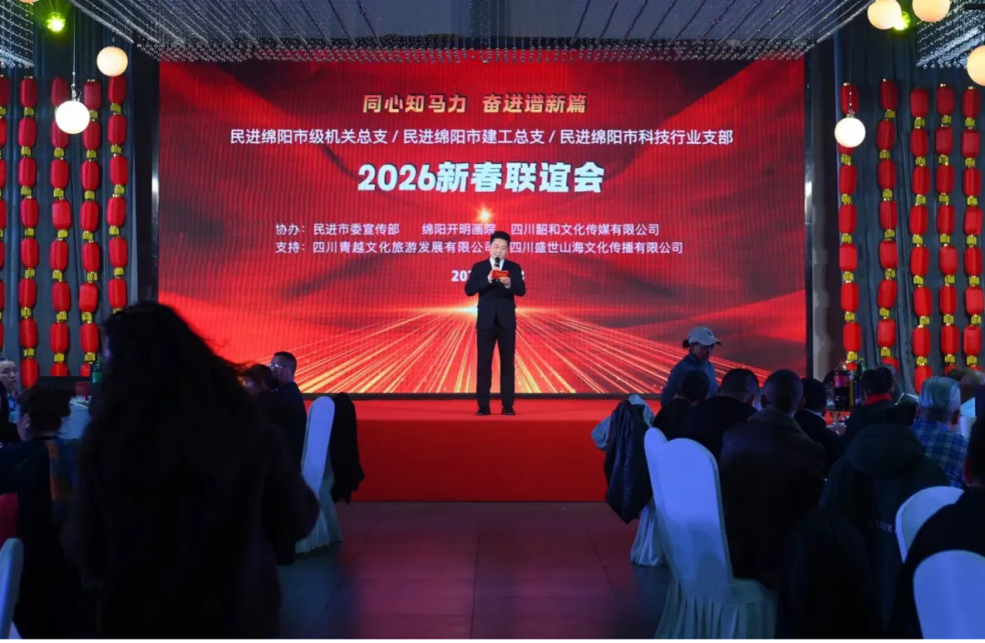 2月3日晚,民进绵阳机关总支、建工总支、科技行业支部和绵阳开明画院联合开展以“同心知马力·奋进谱新篇”为主题的2026年新春联谊会。民进绵阳市委会副主委任小军、秦顺英、赵波,秘书长杨梅和部分老会员代表出席会议。各相关支部会员、开明画院艺术家及特邀嘉宾齐聚一堂,共贺新春,共话发展。联谊会由民进市委会宣传部部长曾川主持。