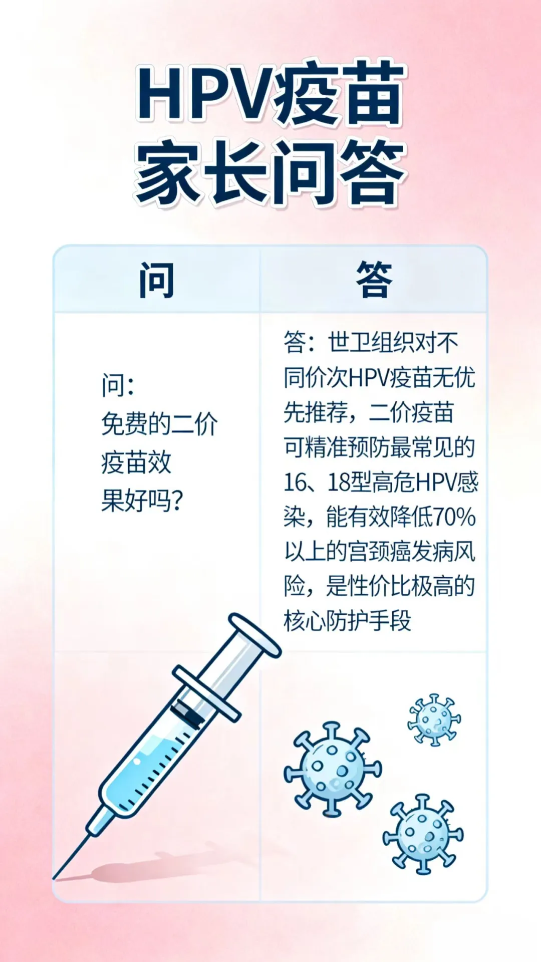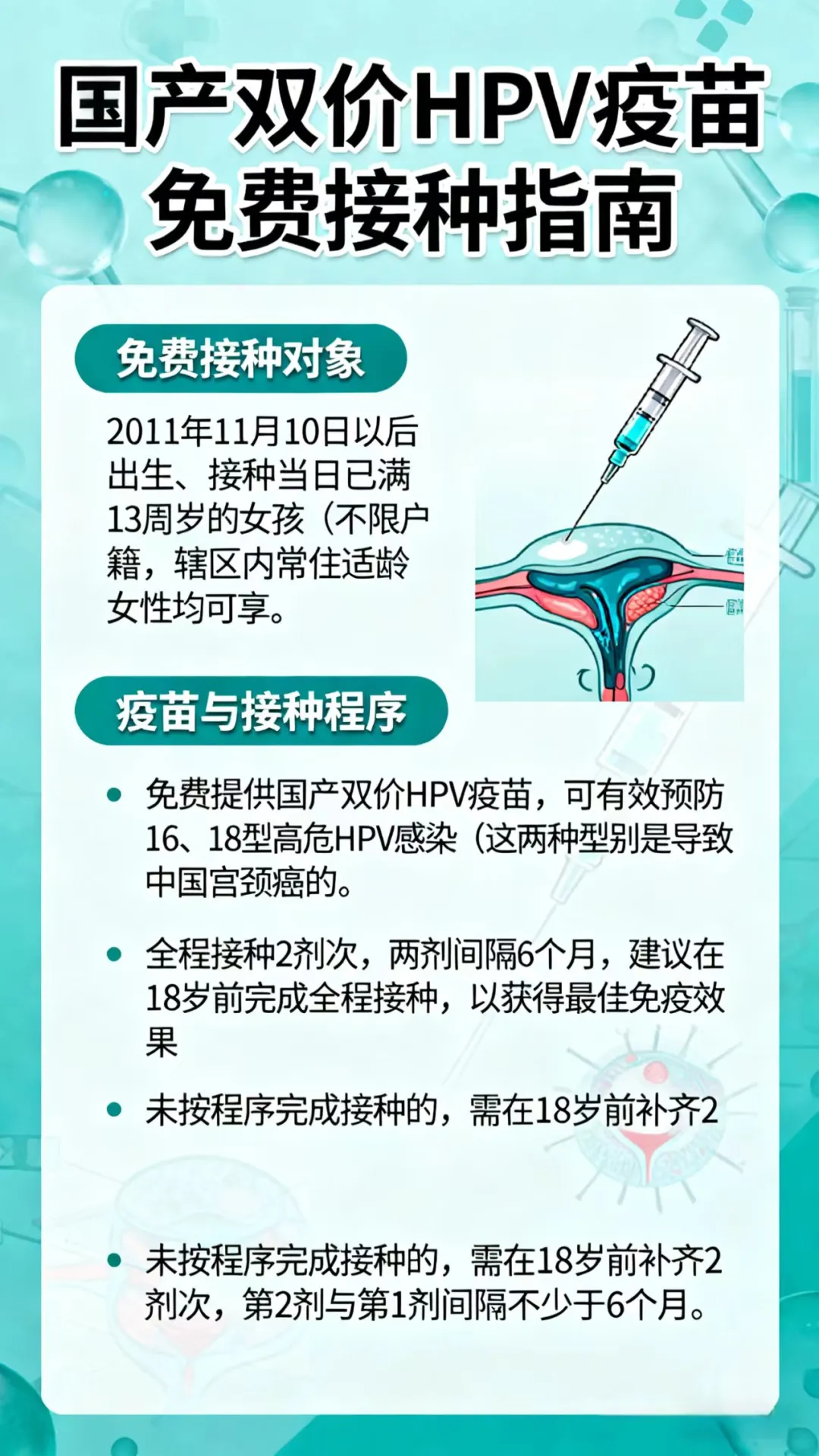 宫颈癌是严重威胁女性生命健康的恶性肿瘤,我国每年新发病例达15.1万例,死亡5.6万例,且发病率呈年轻化趋势 。幸运的是,宫颈癌是极少数可通过疫苗预防的恶性肿瘤,接种HPV疫苗是降低患病风险最经济、有效的长期干预措施 。好消息!根据国家疾控局等7部门联合通知,自2025年11月10日起,HPV疫苗正式纳入国家免疫规划,伯什克然木乡卫生院现已启动适龄女孩免费二价HPV疫苗接种服务,为辖区女孩筑起健康防护墙,这份国家福利请务必查收!如有任何疑问,可拨打卫生院咨询电话:0998-3150107,我们将为您详细解答!