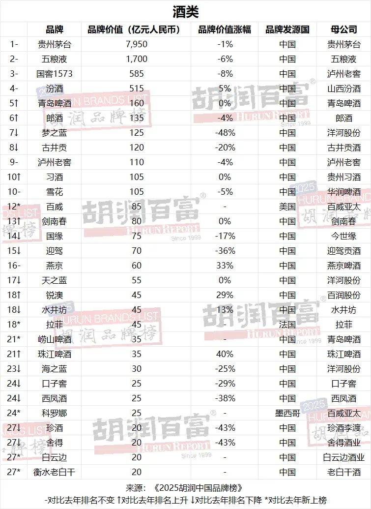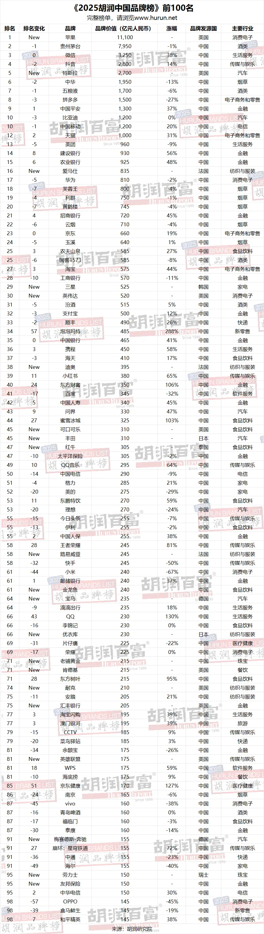 胡润研究院综合公开经济数据和企业最新年度财报数据,对品牌价值进行评估。