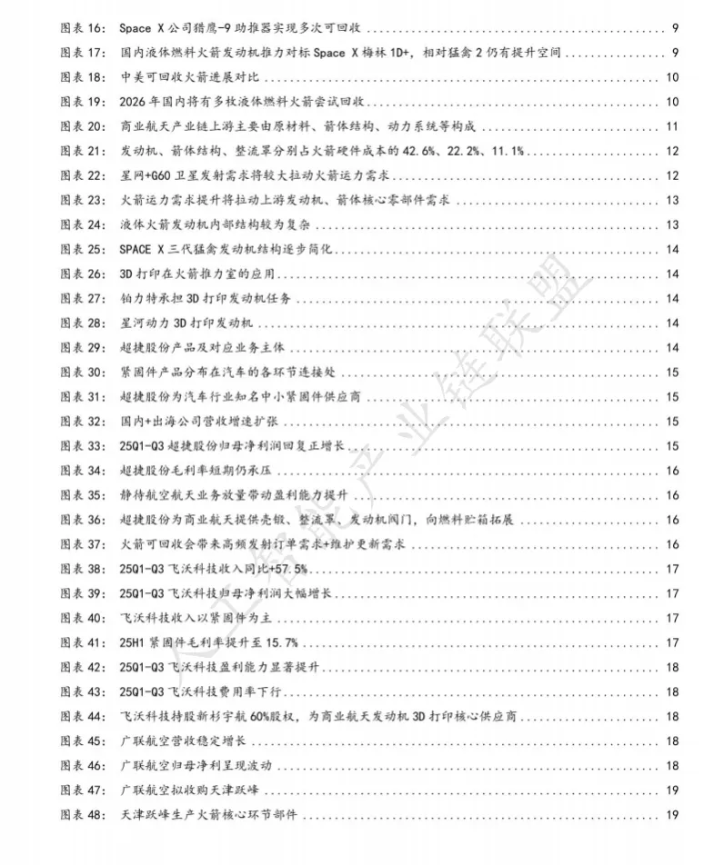 风险提示:商业航天发展不及预期、原材料价格上涨、新进入者增加导致价格竞争、商业火箭公司上市节奏不及预期等,都是投资中需要关注的风险因素。