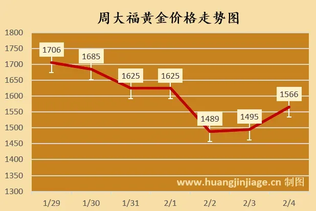 周大福 | 黄金价格 | 1566 | 涨71元 |