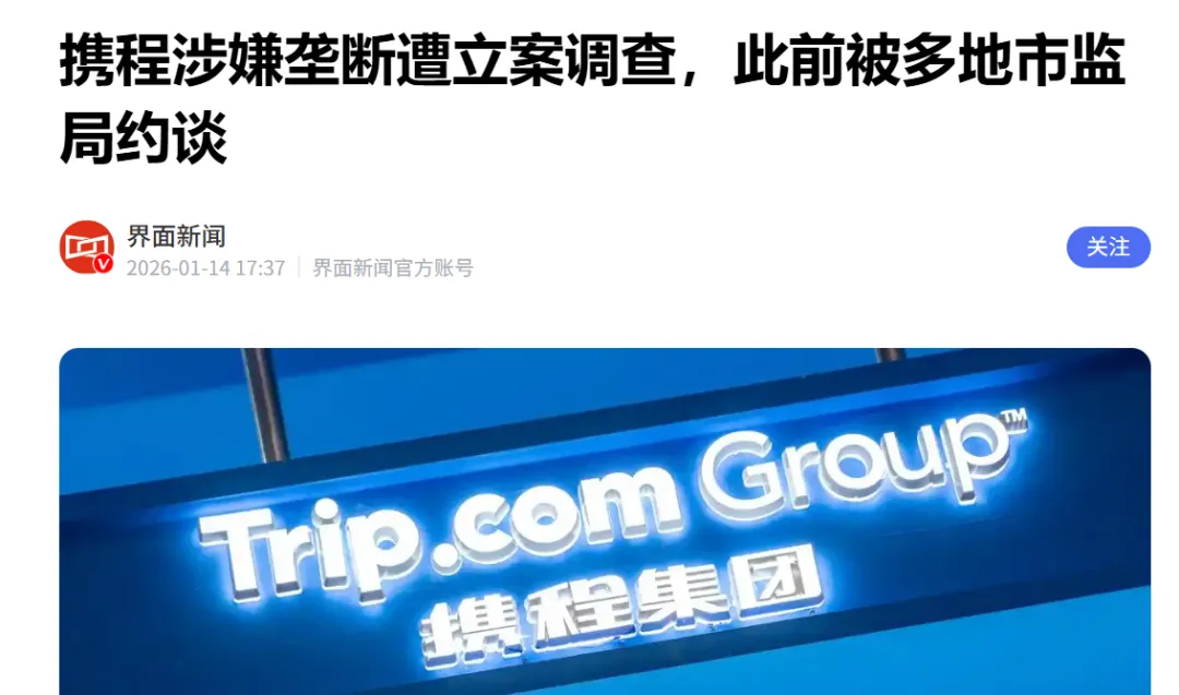 前两周刷出了一个新闻“携程被市场监管总局立案调查”。