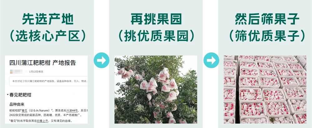 ② 我们在蒲江精挑细选了果园,明确了我们的标准。