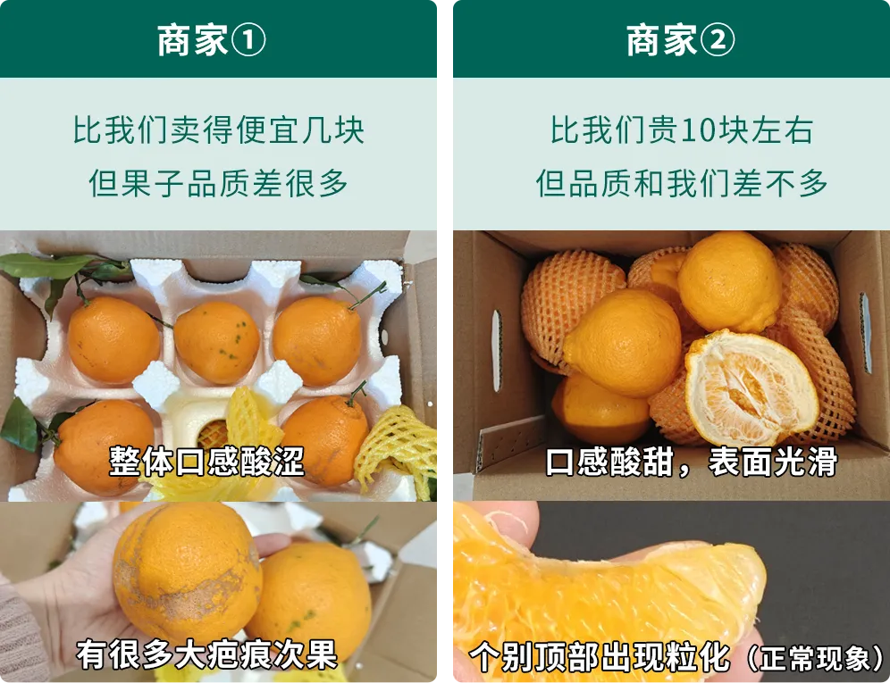 我们和市面大渠道的果子进行了对比: