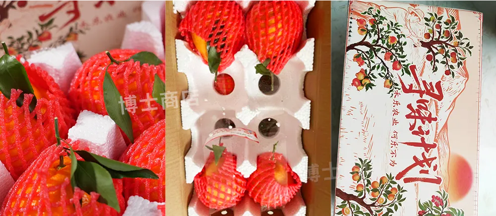 包装用到了单颗网兜+单孔泡沫托+胶带防移位+加厚彩箱,防护到位,送礼也很有排面。