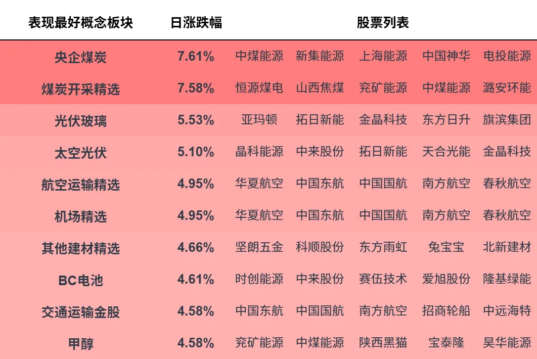概念板块表现情况