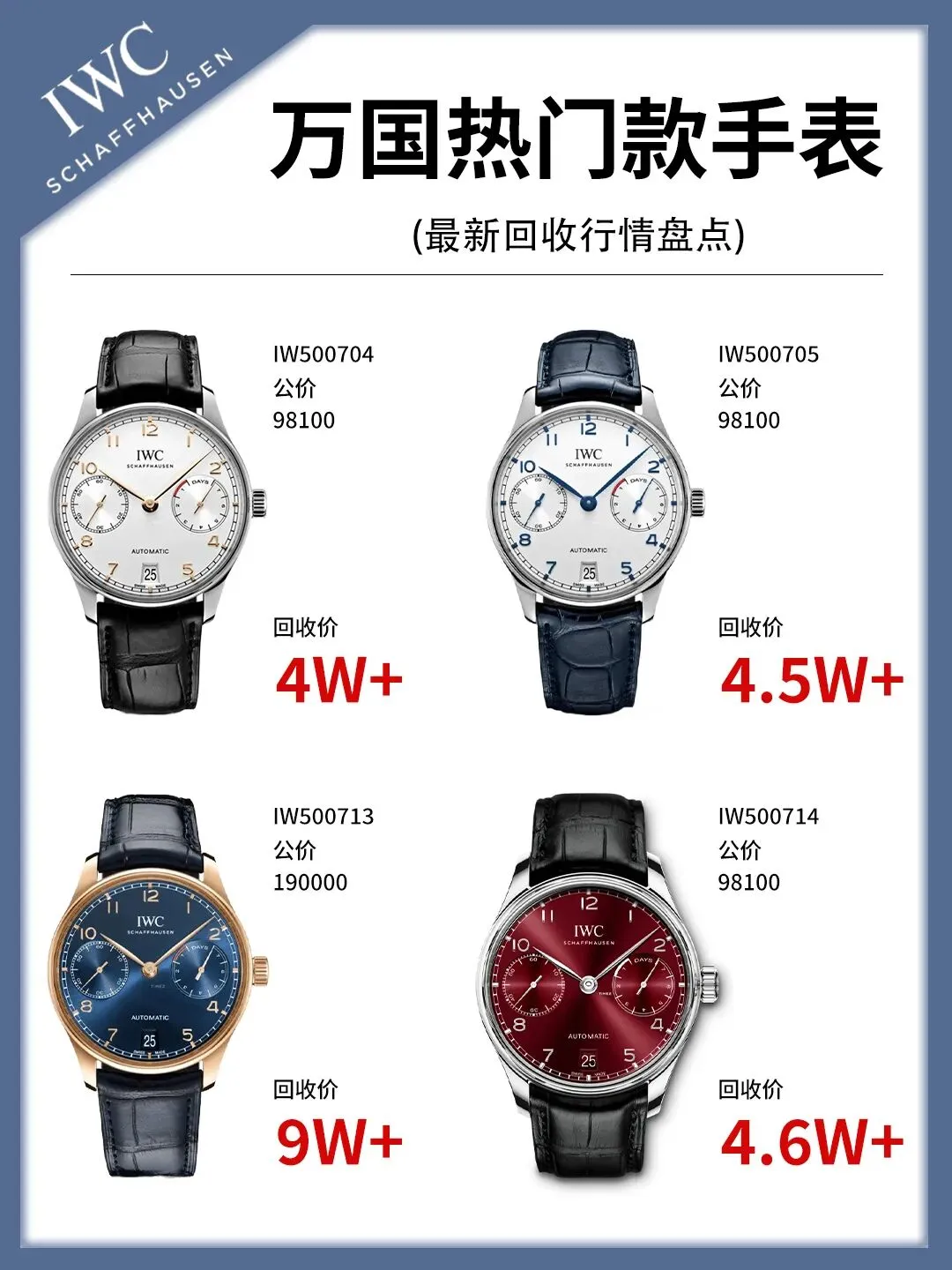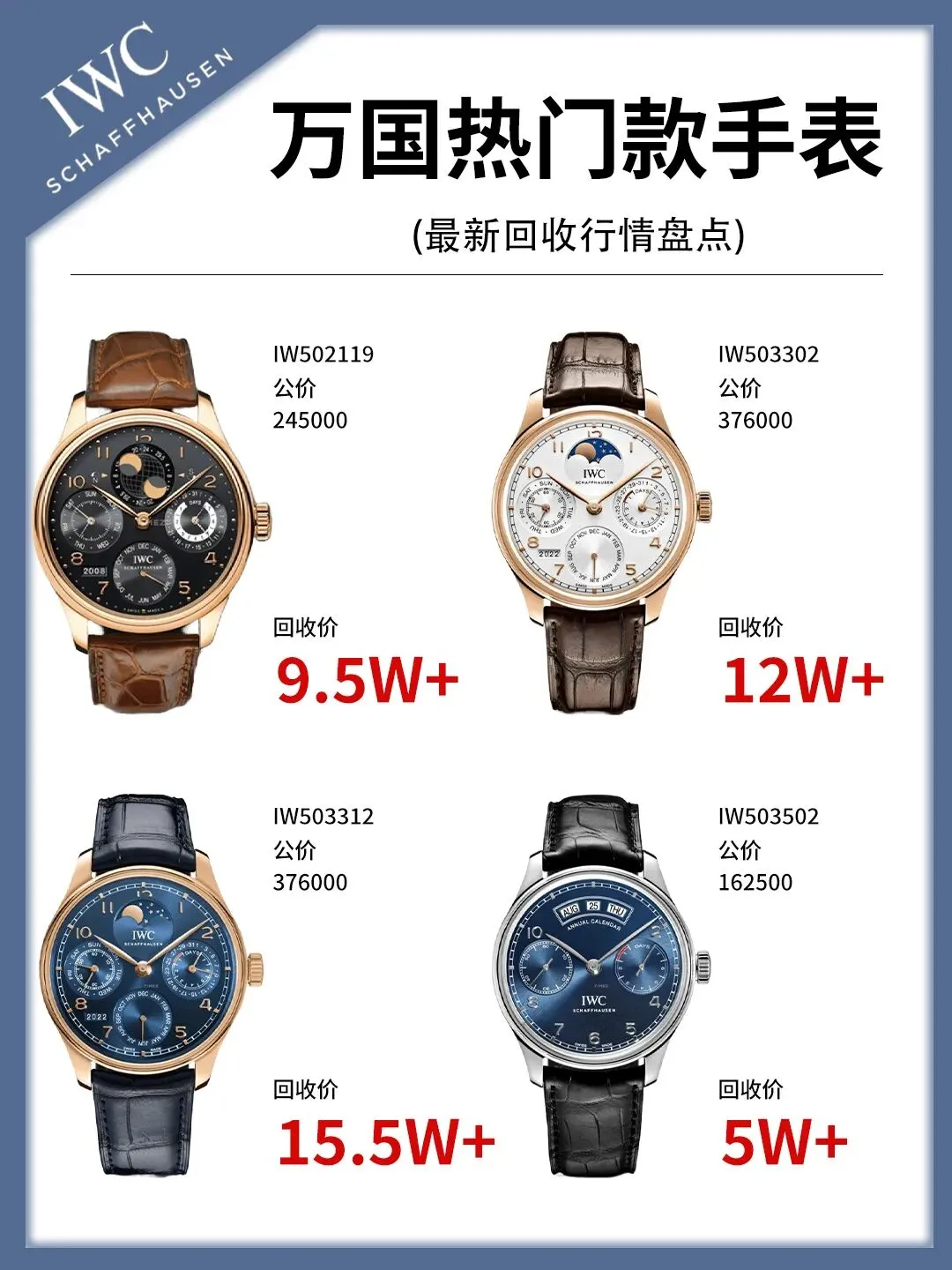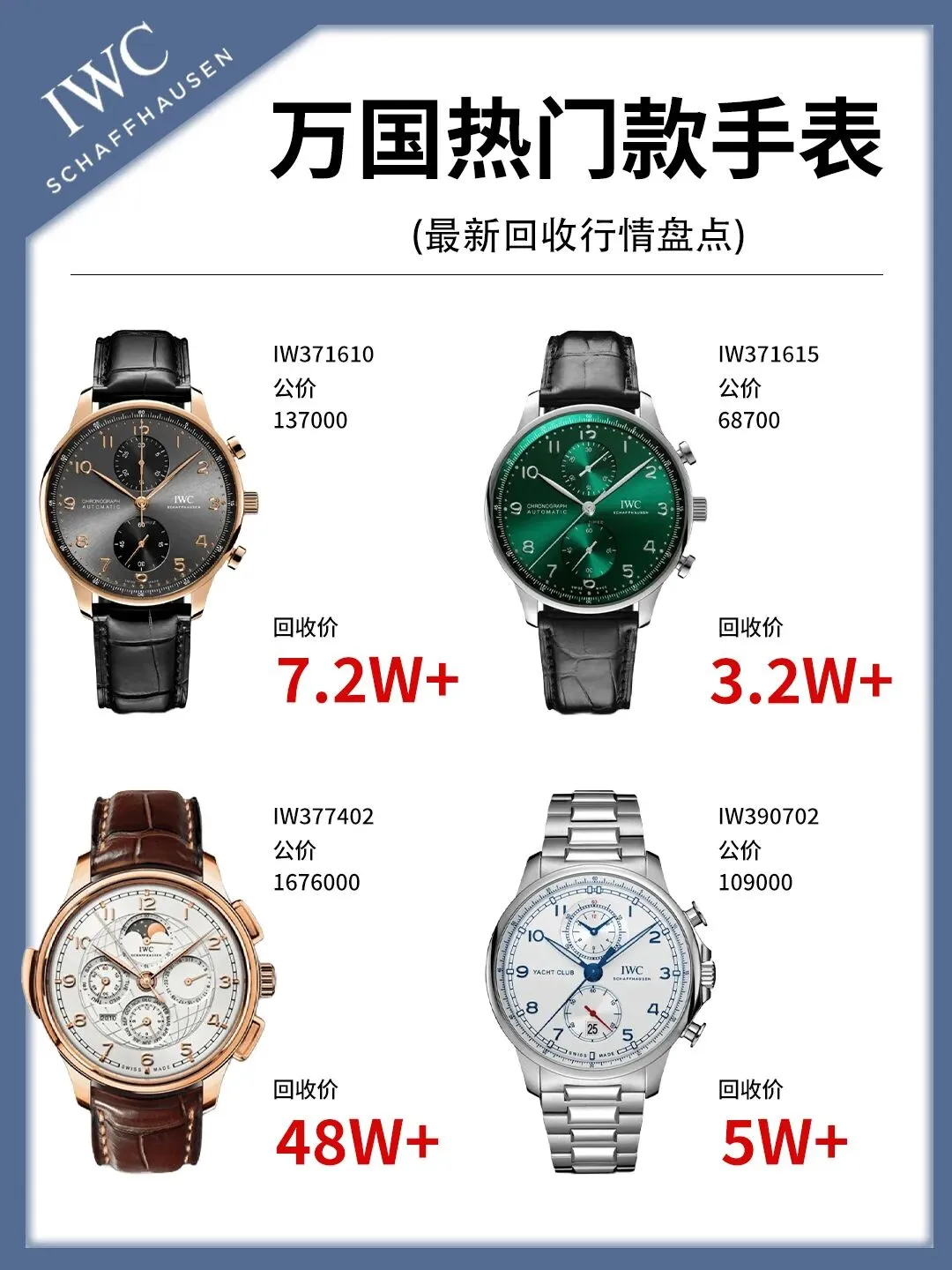 2022年佳士得拍卖会上,一款IWC Portugieser Chronograph “Sapphire”限量50枚的腕表,以超原价2.3倍成交,直接刷新了万国二手表的拍卖纪录。