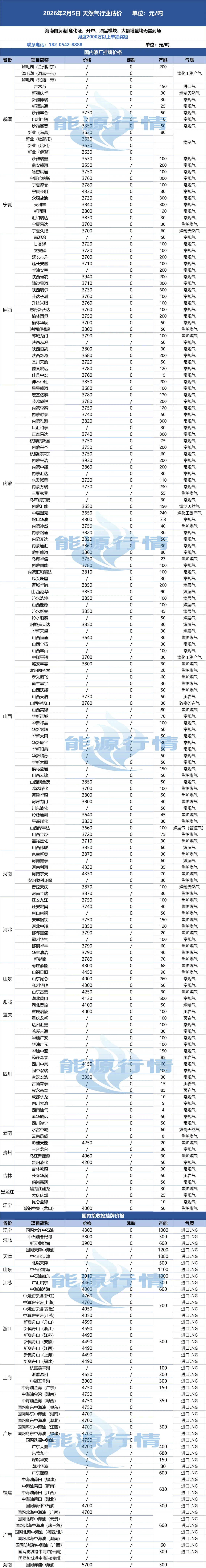 当前位置:首页>价格>【天然气价格】2026.2.5 液价涨跌并存
