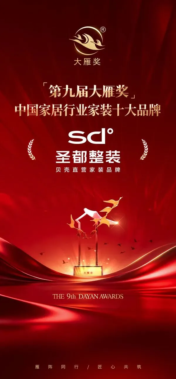 圣都整装荣获“第九届大雁奖·中国家居行业家装十大品牌”称号