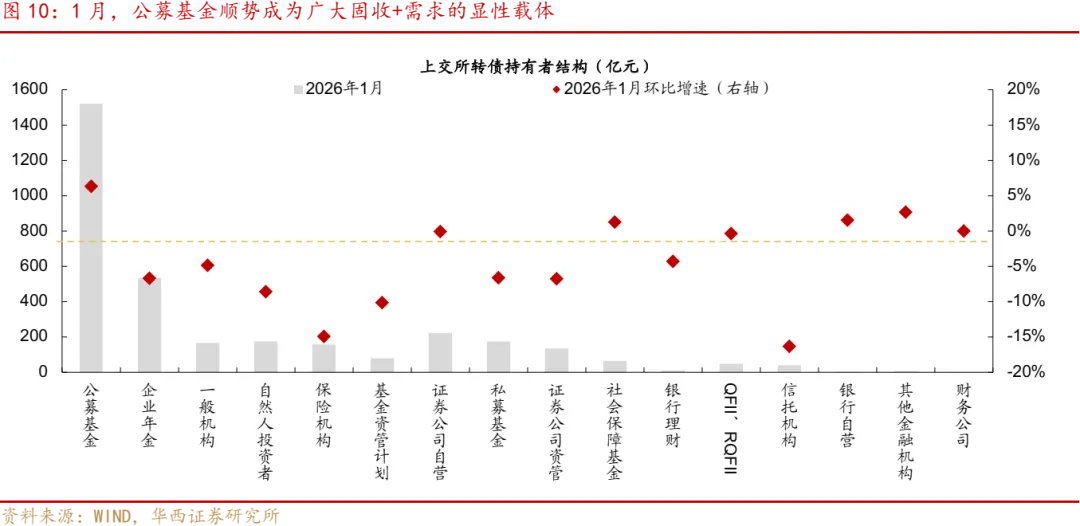 跨年转债估值拉伸行情兑现。我们在1月类权益月报《乘势而上》中曾提及,“机构行为层面,跨年后转债需求值得期待”,从实际市场表现以及上交所转债持有人数据来看,银行、券商等自营类机构的确存在较强做多动力,且公募基金顺势成为广大固收+需求的显性载体,显著增加转债参与度。一方面,公募基金获得大量申购资金,被动配置需求的确存在;另一方面,公募基金自身也存在较强相对收益的压力,主观做多意愿仍强。与此同时,转债估值也的确再度突破拉伸。