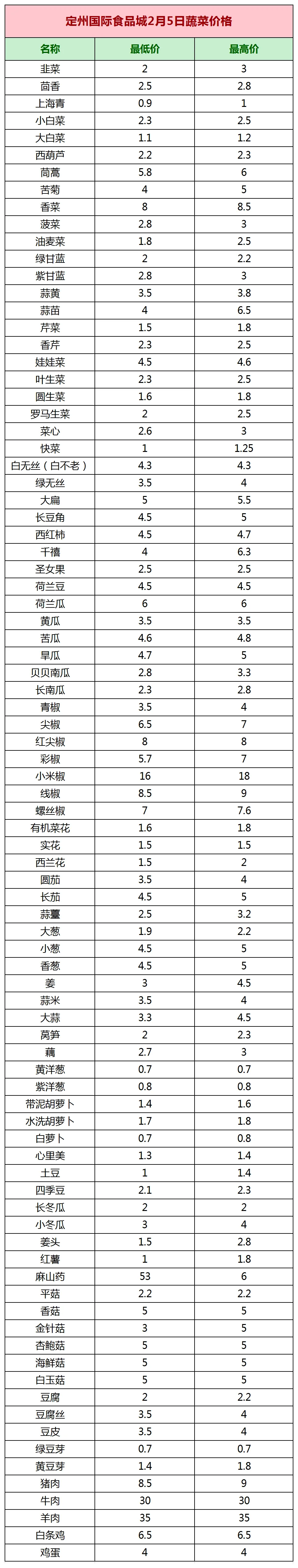 当前位置:首页>价格>定州国际食品城2月5日蔬菜价格