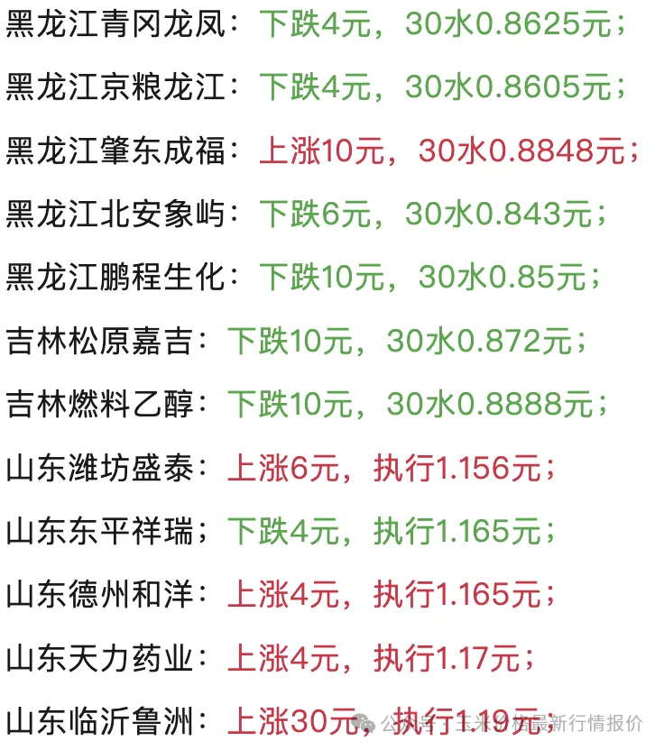 吉林榆树新玉米出库价格2200-2230元/吨;中粮生化水分15%三等新粮挂牌收购价2160元/吨。