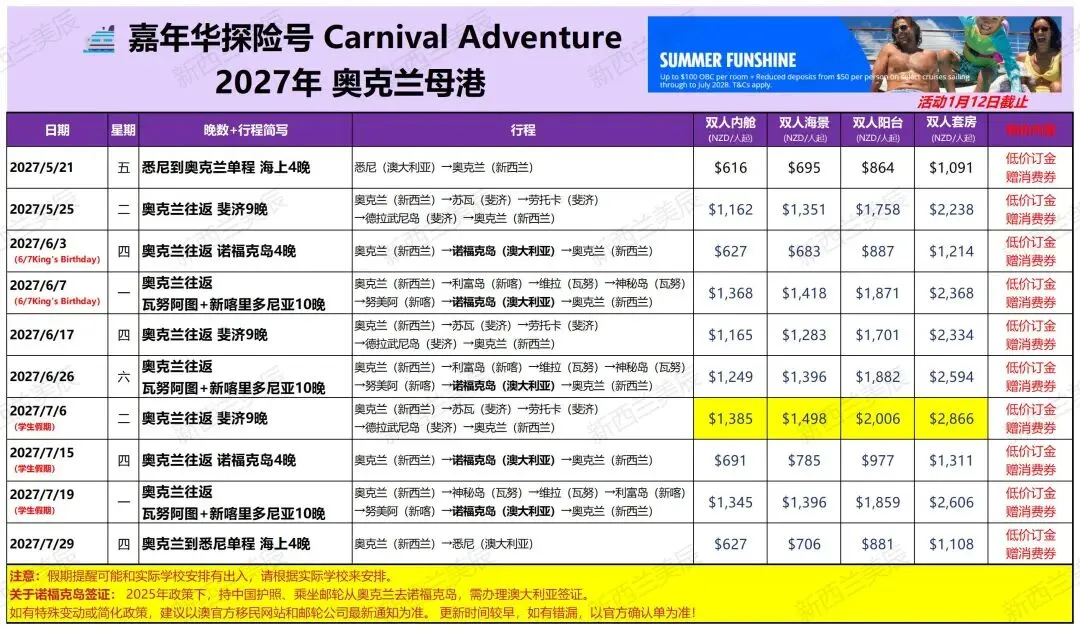 新西兰的朋友别错过2027年奥克兰母港往返嘉年华邮轮航线哦。