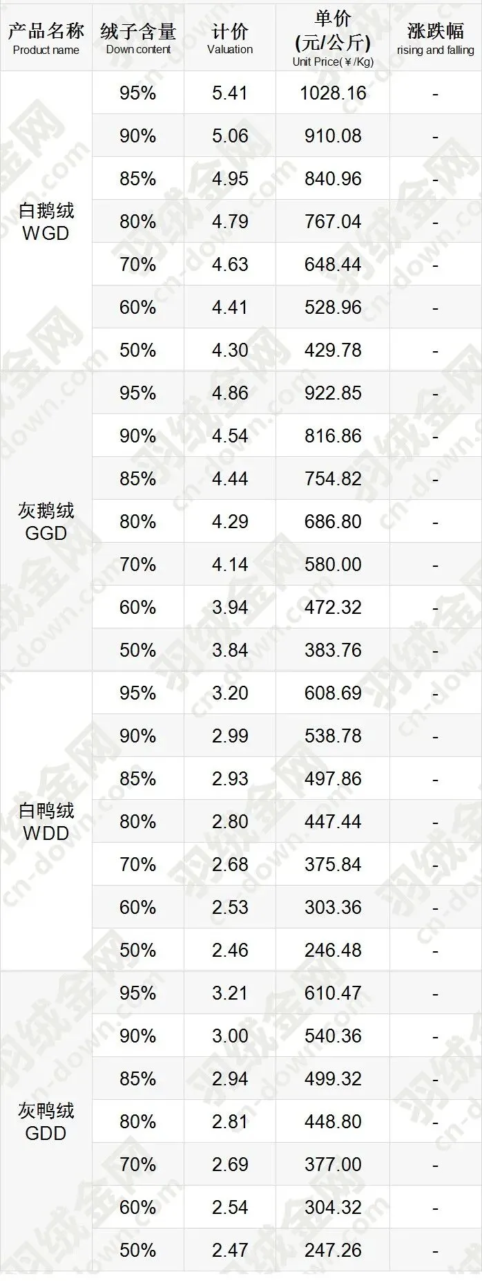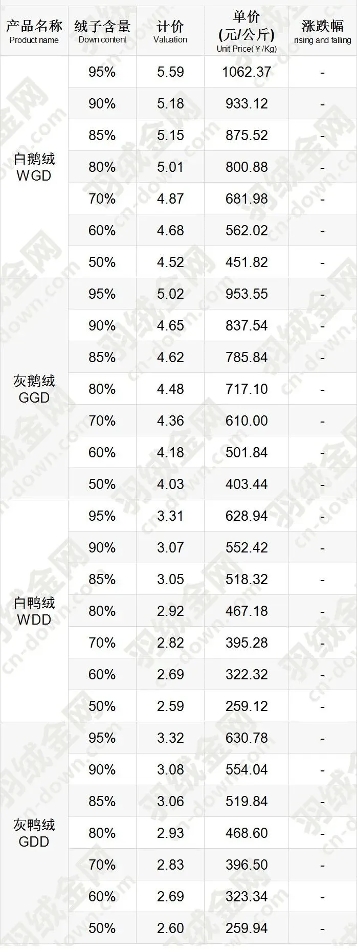 《挥七轩》2026年2月5日羽绒价格行情