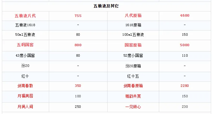 回收价:散瓶价格浮动0~50左右,原箱价格浮动0~150左右每个地方回收价格会略不同
