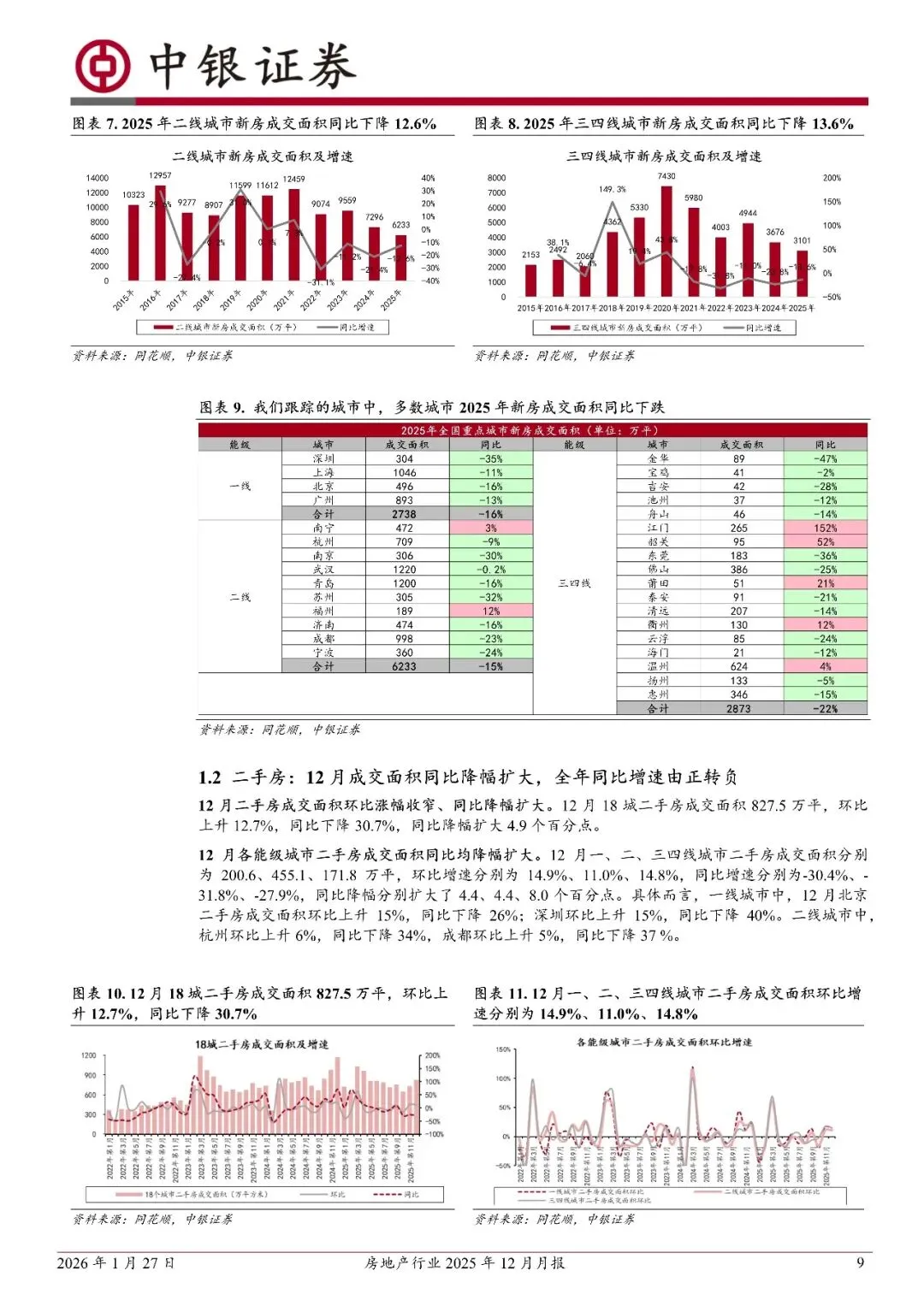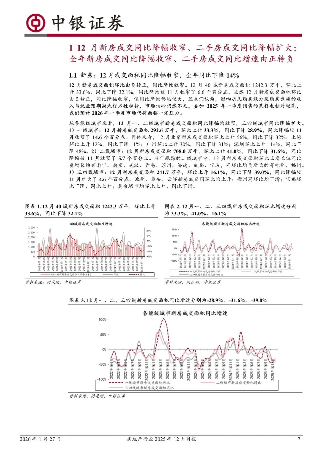 房地产行业2025年12月月报:12月新房成交同比降幅收窄,二手房降幅扩大;全年新房成交同比降幅收窄,二手房同比增速由正转负-260127-中银证券-36页
