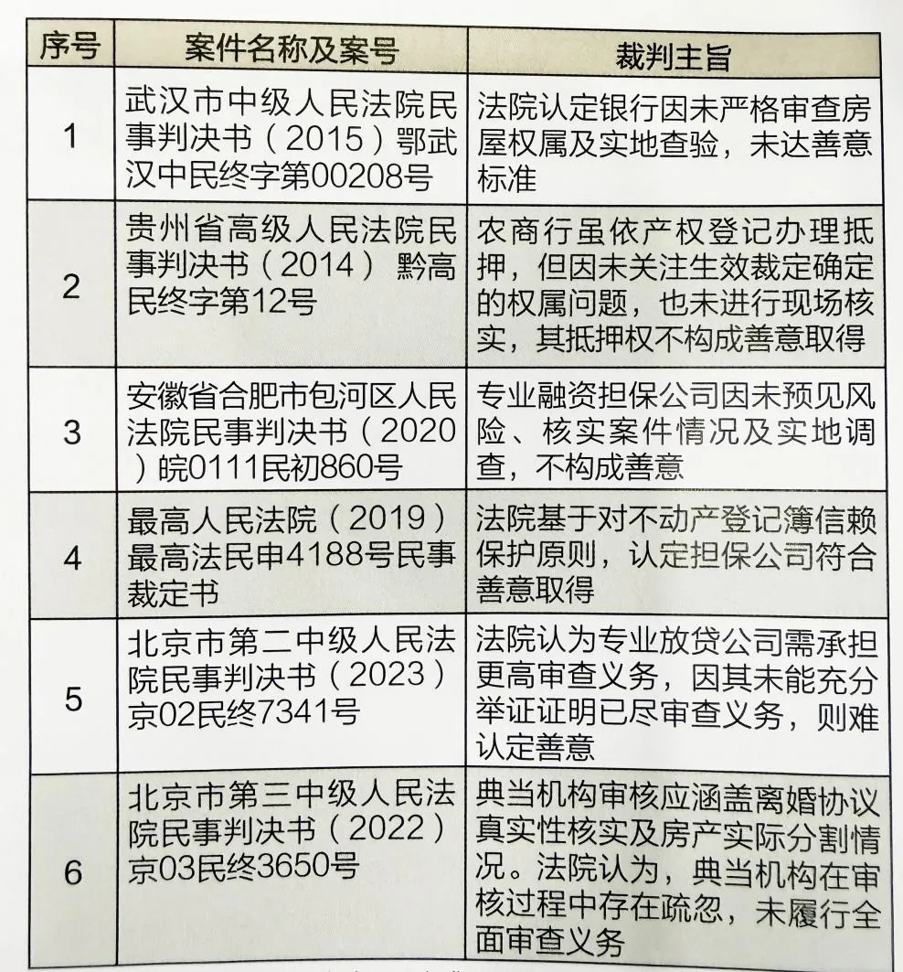 在业务操作中,抵押权人不能仅依赖登记簿记载,融资担保机构应该强化审查能力,对抵押物权属、占有、使用及权利负担进行全面调查甄别,对婚姻房产应重点关注离婚协议细节并核实真伪,综合实地考察等多手段确定抵押物权利状态,规避因审查失当引发的法律风险。