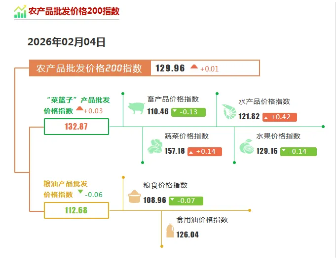 2月4日:“农产品批发价格200指数”比昨天上升0.01个点