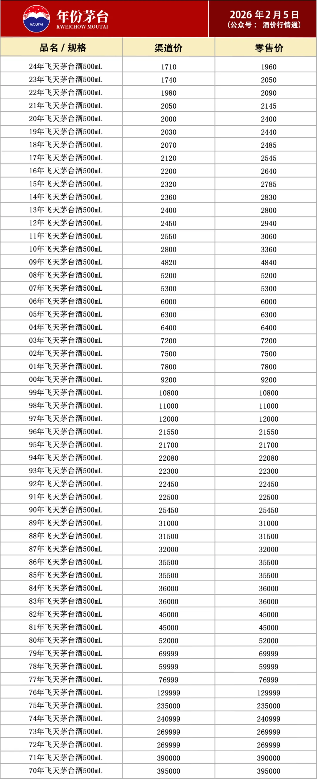 玖品聚社名酒行情:2026年02月05日茅台行情价