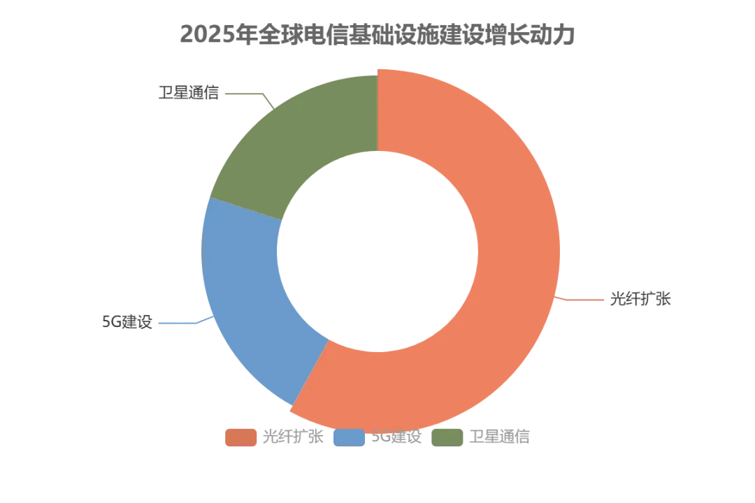 2025 年全球电信行业资本开支达 7800 亿美元,其中 65% 集中投向 “光纤 + 5G + 卫星” 融合网络建设。北京研精毕智的研究报告指出,基础设施建设已从单一维度升级为 “地面 + 空中” 协同模式:光纤扩张贡献 58% 的增长动力,核心市场光纤渗透率超 52%;低轨卫星通信成为偏远地区覆盖的关键补充,2025 年全球卫星互联网用户达 1500 万,中国星网、Starlink 等企业组网进度超预期,有效填补农村、海洋等区域覆盖缺口。