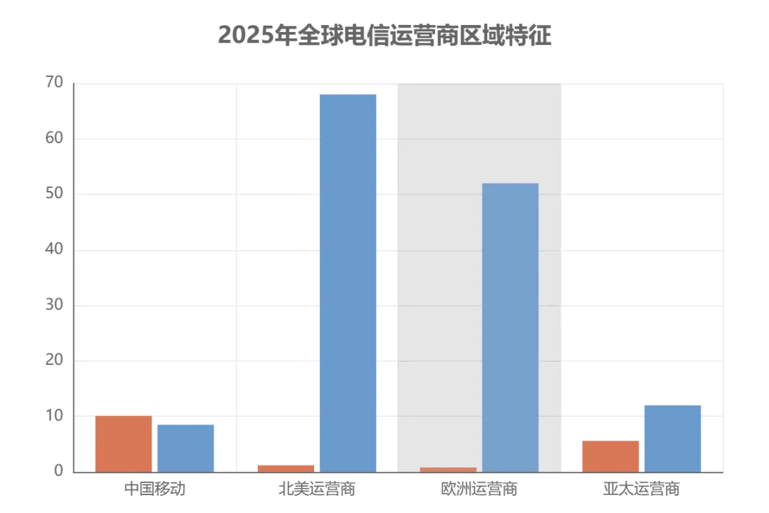 运营商层面:呈现 “头部集中、区域割据” 特征,中国移动以 10.1 亿用户、1920 亿美元营收领跑全球,北美运营商聚焦高端市场(ARPU 达 68 美元 / 月),欧洲运营商侧重服务质量与生态构建,亚太运营商通过规模效应抢占中低端市场;行业并购加剧,2025 年全球电信行业并购金额达 860 亿美元,集中于企业通信、物联网领域;