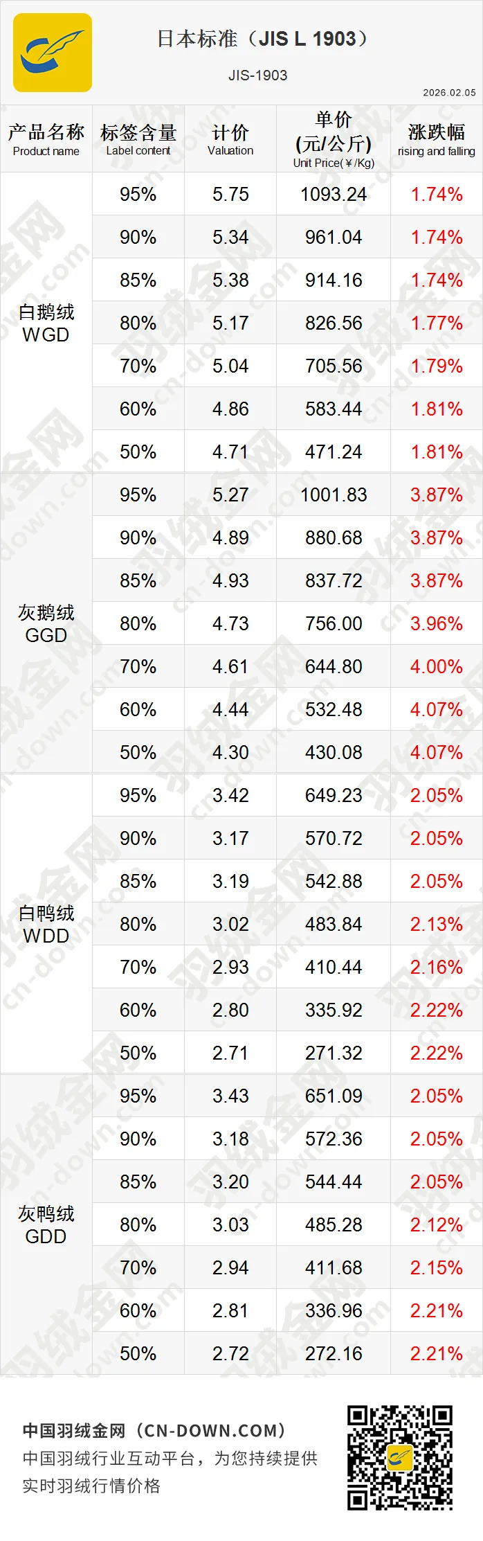 创建于2007年,逐步发展成为全球羽绒行情的风向标,是一家专注于羽绒行情价格发布的权威行业平台。作为中国羽绒行业的重要信息枢纽,羽绒金网持续提供实时精准的羽绒价格走势、市场行情分析和行业资讯为核心服务,覆盖羽绒产业链上下游的企业用户。