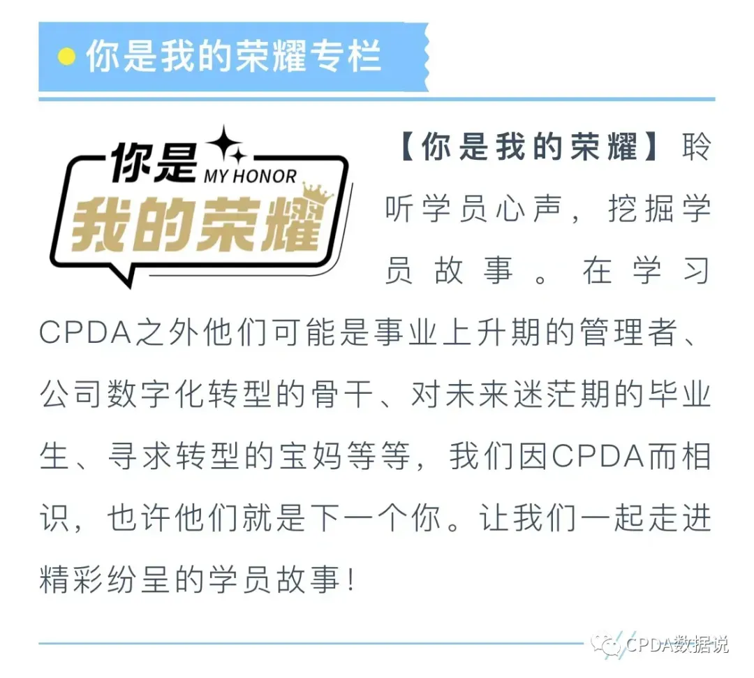 🔹与CPDA结缘5年,认为数据思维的提升至关重要。