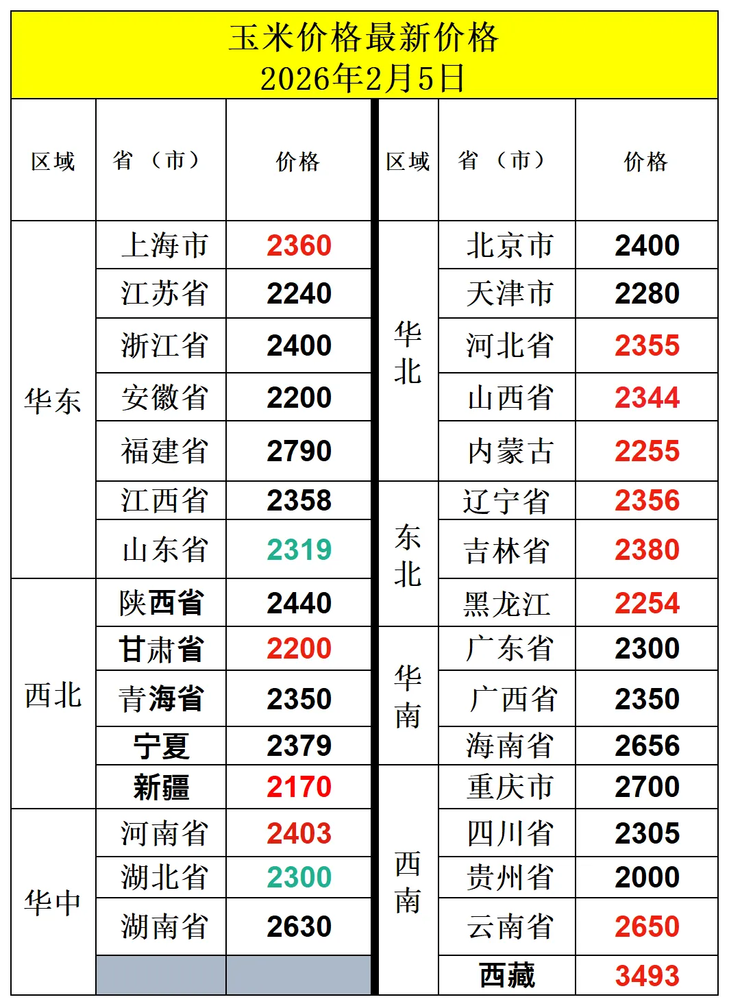 当前位置:首页>价格>【玉米、豆粕价格】2026.2.5