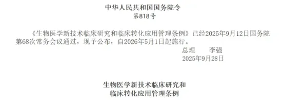 2026年初,中国干细胞行业迎来两份重量级政策文件:国务院第818号令《生物医学新技术临床研究和临床转化应用管理条例》(2026年5月1日施行)与第828号令《中华人民共和国药品管理法实施条例》(2026年5月15日施行)。这两项法规共同构建了我国干细胞治疗“双轨制”监管体系——“药”归国家药监局(NMPA),“术”归国家卫健委。对从业者、医疗机构、企业乃至已存储干细胞的用户而言,这既是明确路径的起点,也是合规门槛抬高的信号。