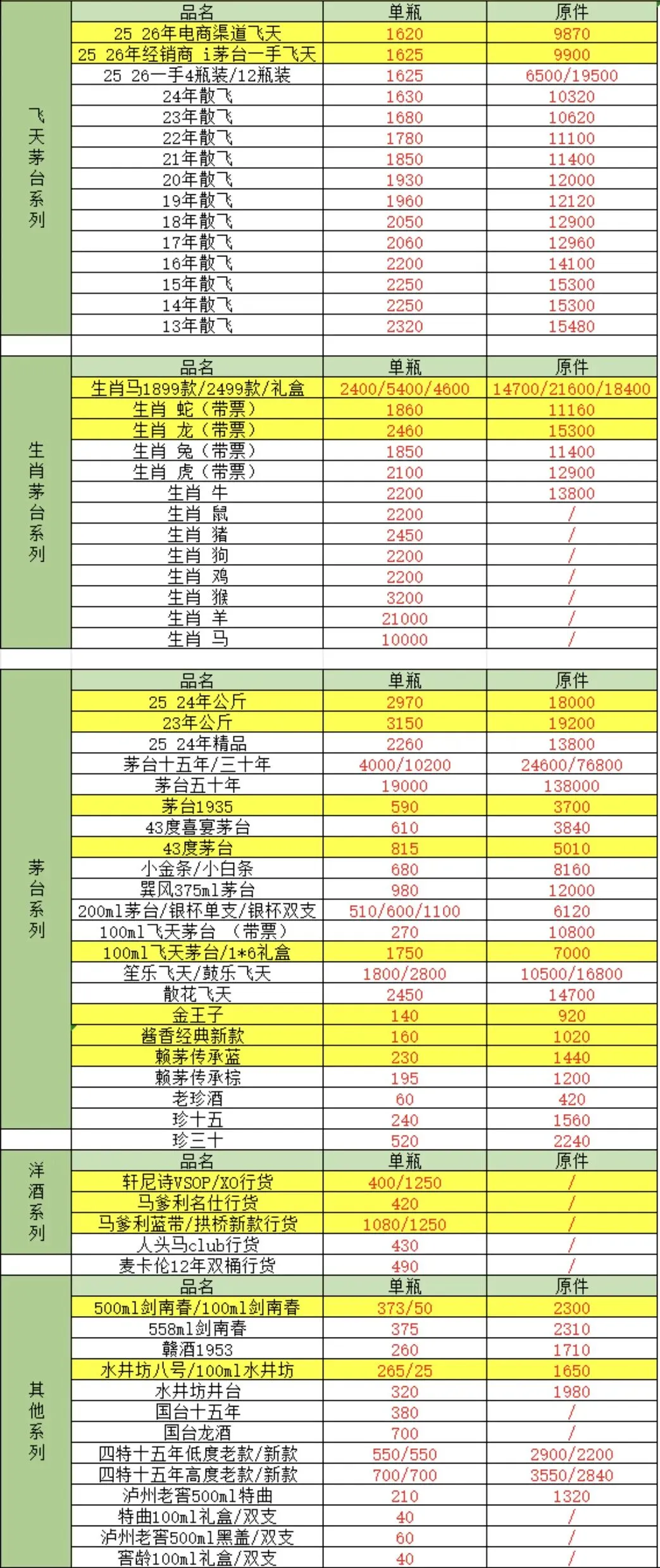 由于白酒飞天茅台价格存在实时变化、地区差异等原因,报价仅供参考。