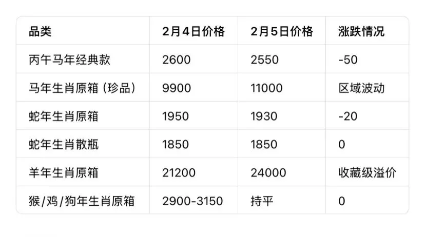 丙午马年经典款、蛇年生肖酒价格回落,主要受三大因素影响: