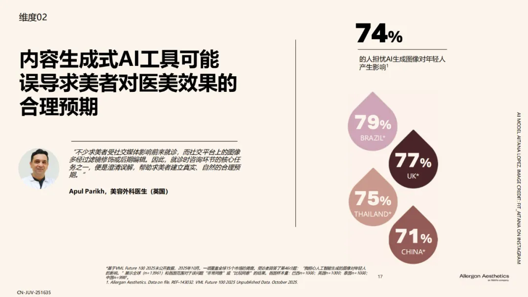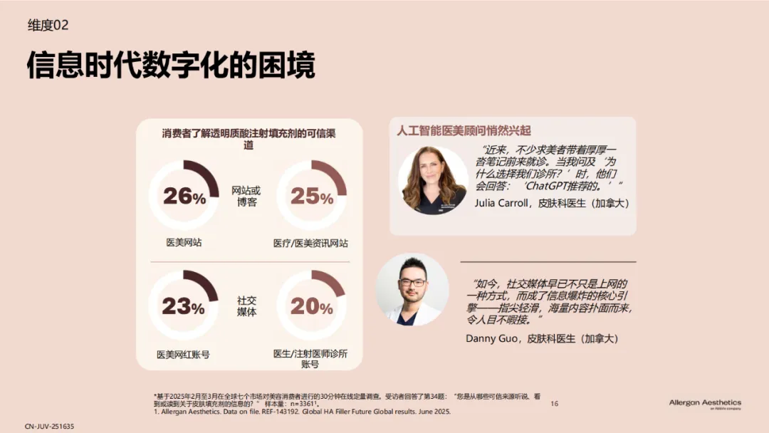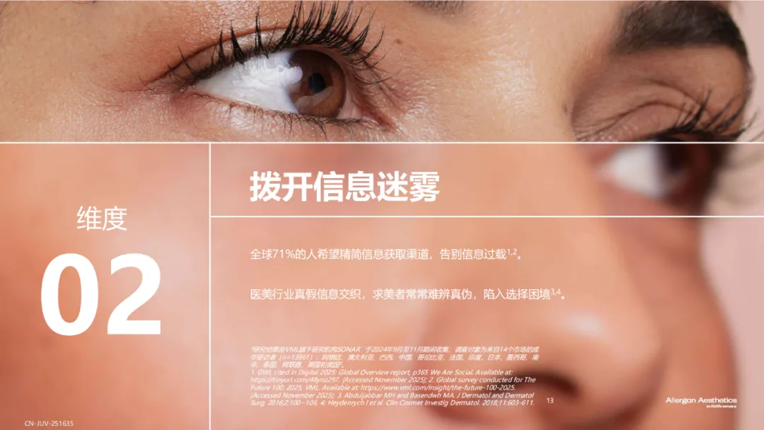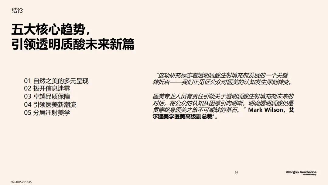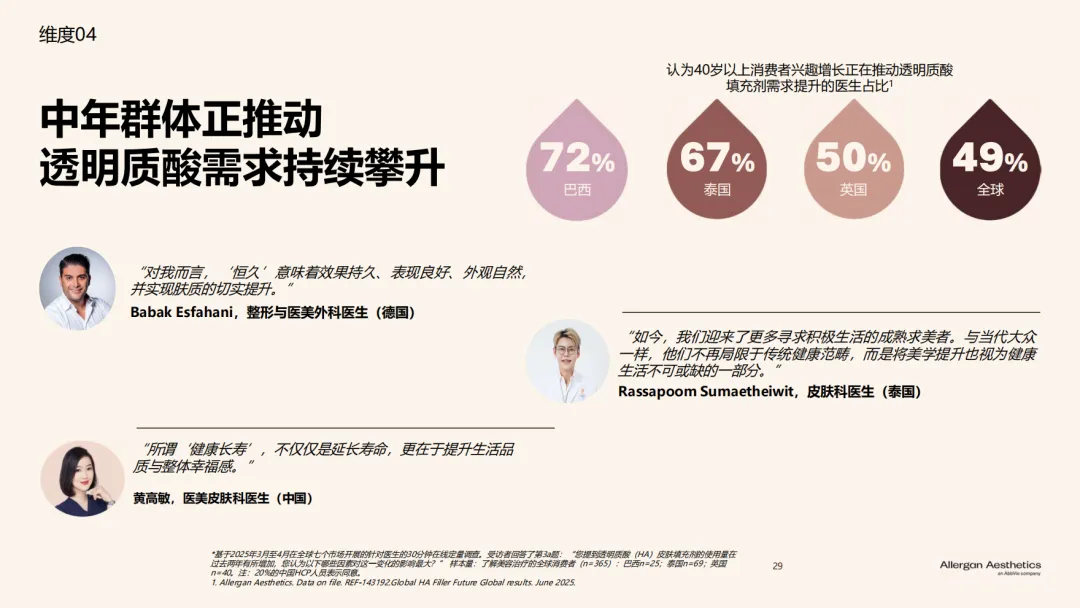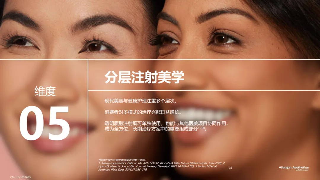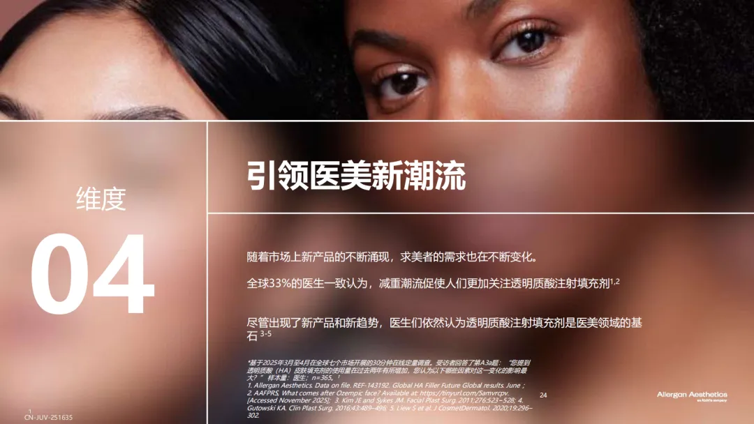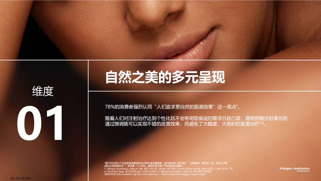 近日,艾尔建美学重磅发布了《全球透明质酸应用未来趋势报告》,该项研究汇聚了全球多个市场的医美需求者洞察与医美专家智慧,深入剖析医美需求者和医生对于透明质酸填充剂的认知与未来趋势,充分肯定了透明质酸填充剂在美学领域的基石地位,聚焦透明质酸填充剂所能实现的“安全、自然”的效果,为行业认知升级提供有价值的参考。