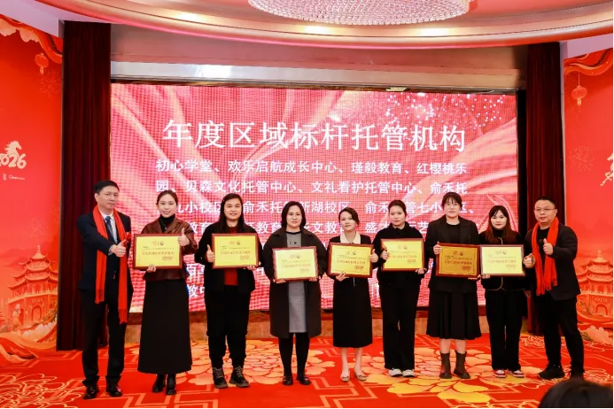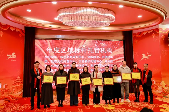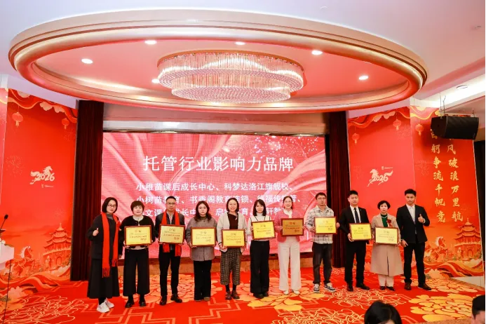 当晚的表彰联欢环节,氛围热烈而温馨。主办方为年度“区域标杆托管机构”“托管行业影响力品牌机构”“幼小衔接教学示范校”等获奖单位及个人隆重颁奖,以表彰先进、树立行业榜样,激励更多机构向规范化、品牌化方向迈进。
