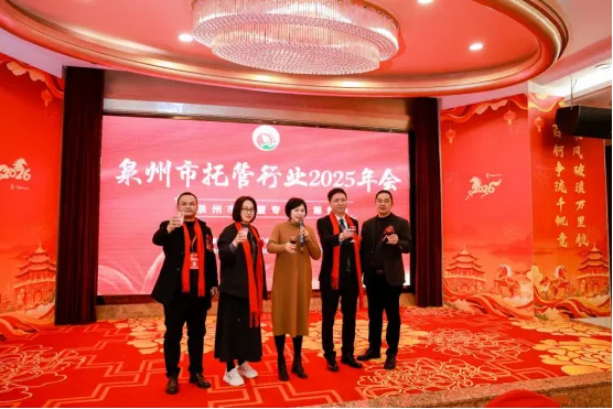 厦门托管专委会负责人蔡伍生先生、漳州托管专委会负责人郑木生先生受邀致辞,为大会送上诚挚祝贺。两位负责人高度肯定本次年会筹备工作,寄语泉州托管专委会凝心聚力、规范发展,愿三地同仁加强联动、互学互鉴,携手推动闽南托管行业高质量发展,共谱行业新篇章。