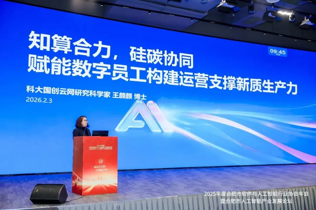 授牌仪式上,协会副理事长、科大国创党委副书记、副总裁李飞代表协会,与行业同仁共同为包括科大国创在内的多家发起单位颁发荣誉。这标志着公司在区域开源生态共建中迈出坚实一步,未来将持续推动技术共享与产业协同。在人工智能产业发展论坛环节,科大国创研究科学家王颜颜博士发表题为《知算合力,硅碳协同,赋能数字员工构建运营支撑新质生产力》的主题演讲。