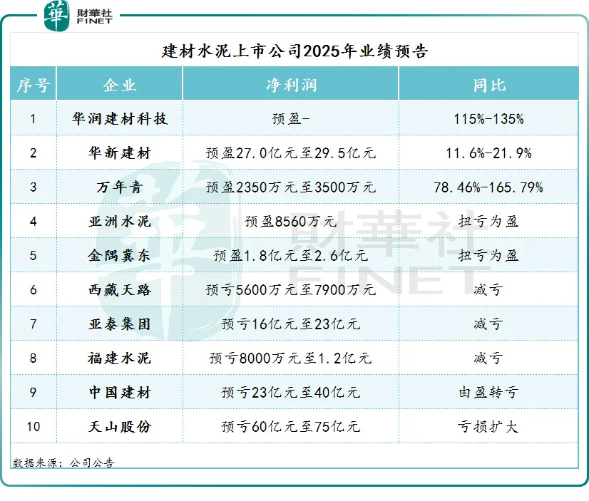 此外,万年青(000789.SZ)、亚洲水泥(00743.HK)、金隅冀东(000401.SZ)三家公司2025年盈利也预计显著改善。