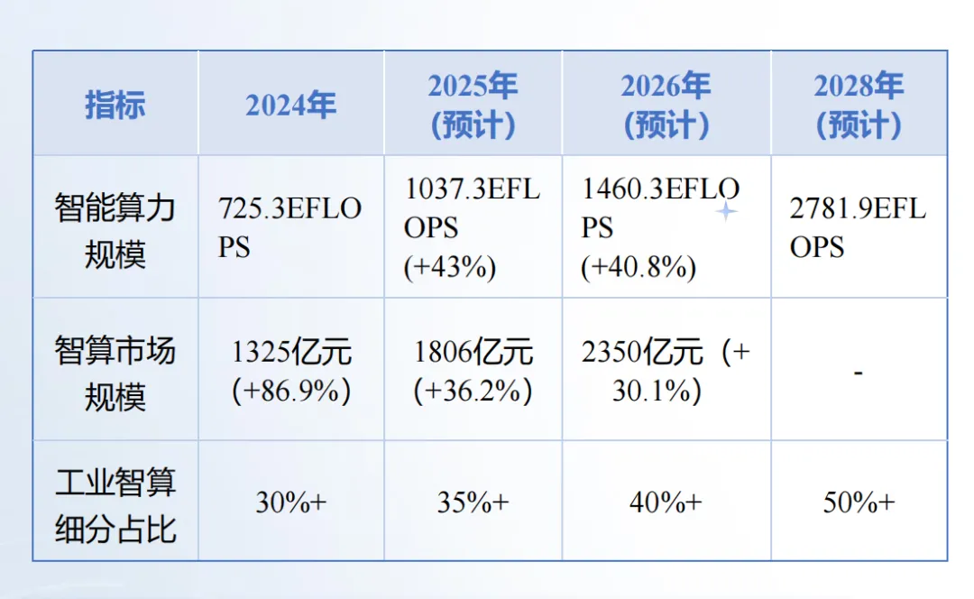根据中国工业互联网研究院最新发布的《工业智算发展研究报告》,一场围绕“算力”的底层变革正在发生。报告中显示,2025年全国智能算力规模预计达1037.3EFLOPS,2028年有望突破 2781.9EFLOPS。而这其中,2025—2028年超35%的算力将直接服务于工业领域。