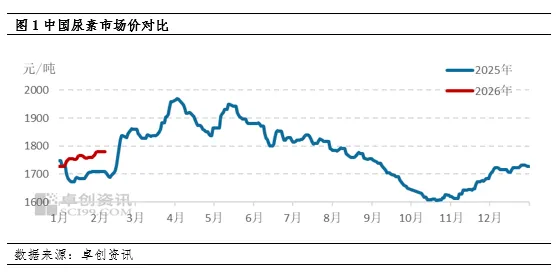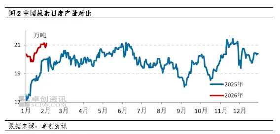 目前国内尿素整体处于全年备肥期,农业需求阶段性补单。工业需求基于复合肥、板材整体开工负荷略有提升,加之前期原料库存下降,因此新单补单意愿较为积极。与此同时,部分小单出口集港有序进行中。截止到2026年1月,中国复合肥企业产能利用率为43.79%,较2025年12月同期提升1.91个百分点。目前国内复合肥市场高位运行,原料跟进尚可。基层用肥淡季,且种植收益不理想抑制,经销商逐级铺货不畅,回收货款乏力,冬储备肥主流到货6成左右。加之冬储备肥周期长,经销商逢低适量跟进打款,故原料尿素采购仍有延续。